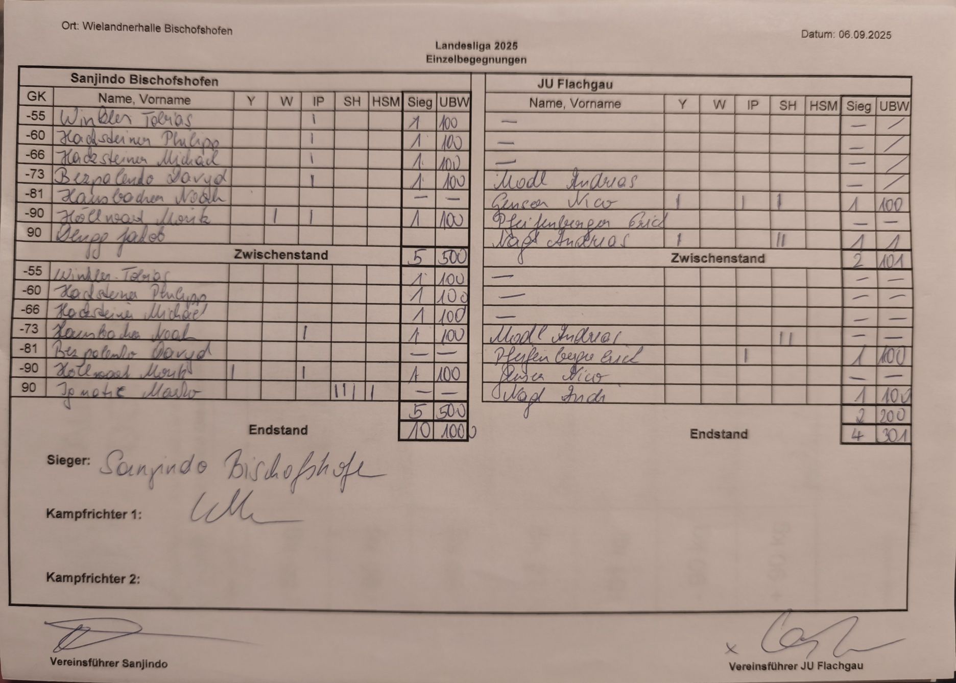 06.09. | Bischofshofen | ESV Sanjindo – JU Flachgau | 10:4 | 1000:301 |